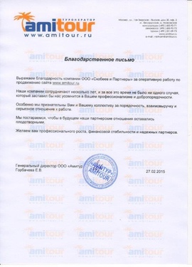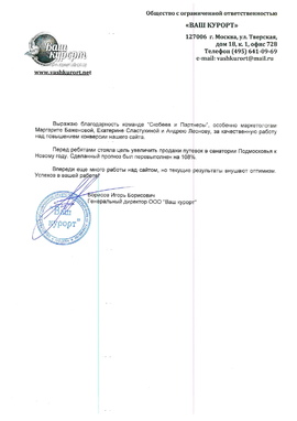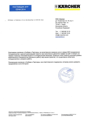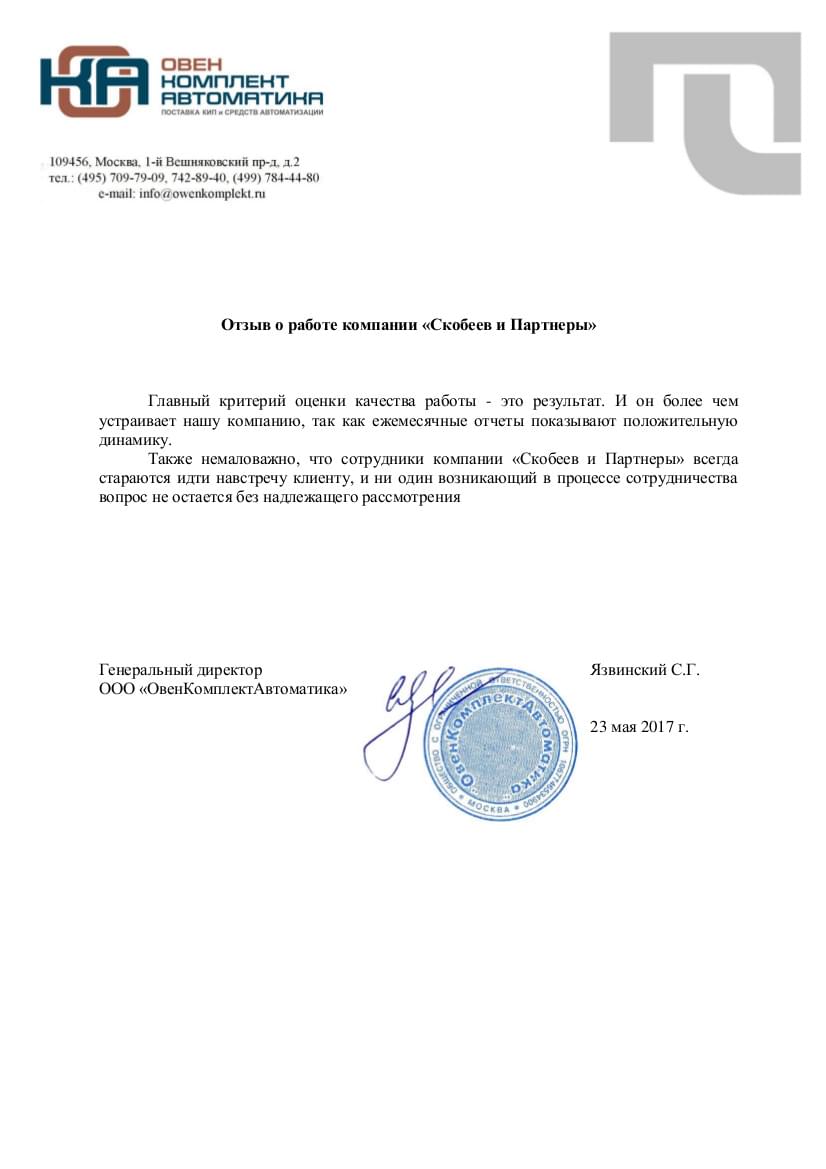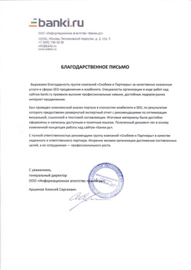 Хотели бы поблагодарить ООО "Скобеев и Партнеры" за качественно и в срок выполняемые работы по продвижению нашего сайта